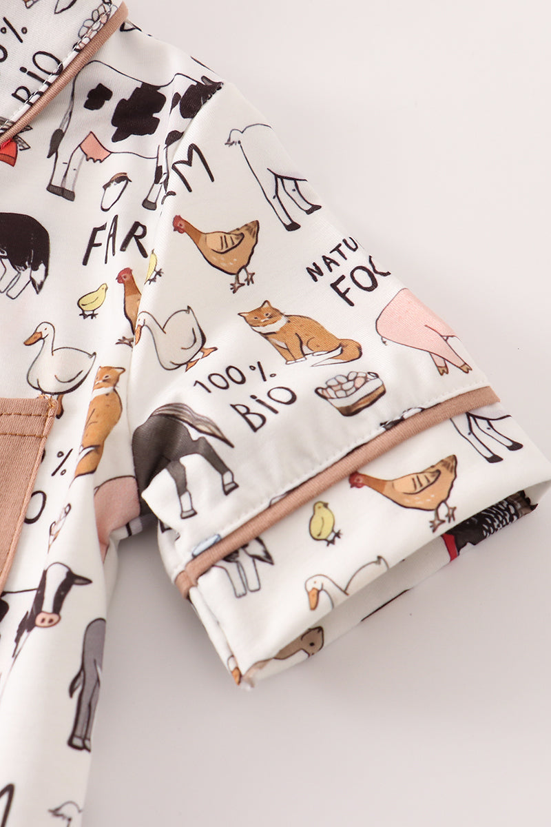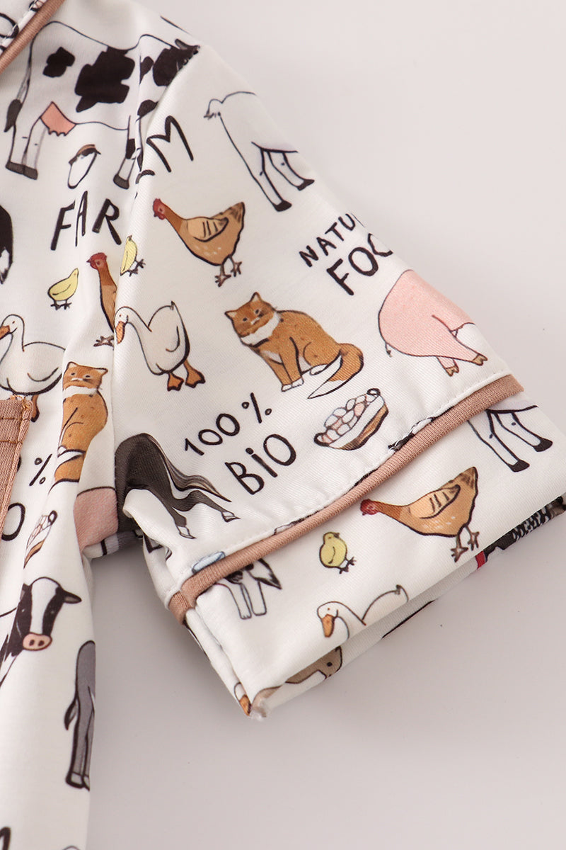 Unleash your inner farm boy with this cozy beige pajama set! Made with soft and breathable fabric, it's perfect for a comfy night's sleep or lounging around the house. Channel your playful side with this quirky set - it's the perfect addition to your pajama collection. (Only 42 words - nailed it!)