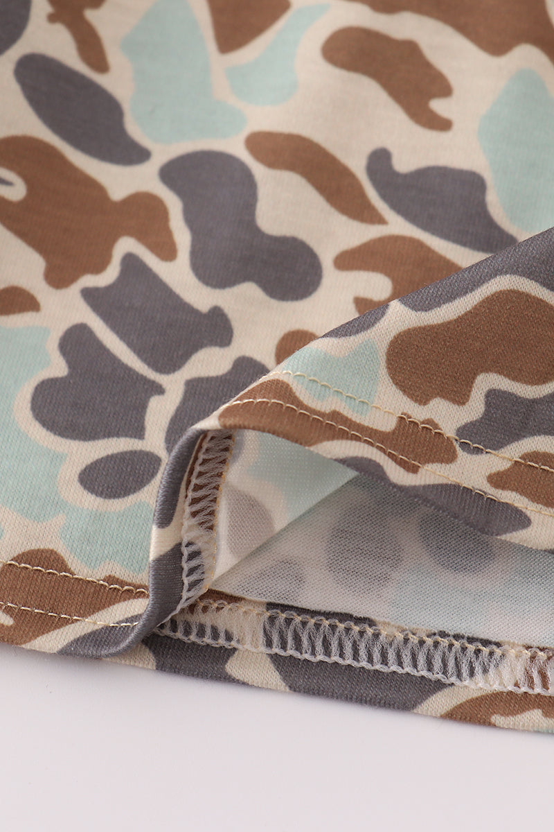 This black camouflage dress features a charming pumpkin applique and playful ruffle details, perfect for adding a fun twist to your seasonal wardrobe. Its unique design blends edgy camo with festive flair, making it an ideal choice for celebrations or everyday wear with a spirited touch.