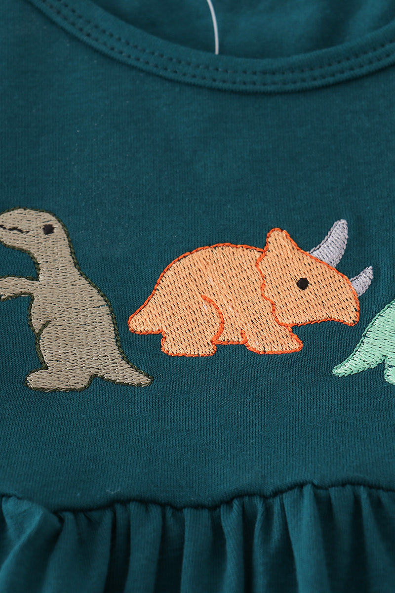 Bring fun to any outfit with this blue dinosaur embroidery plaid ruffle pants set. Featuring charming dinosaur details and playful ruffles, this set combines comfort with a whimsical style perfect for lively days and imaginative adventures. The soft plaid fabric adds a cozy touch, making it an ideal choice for little ones who love to stand out.