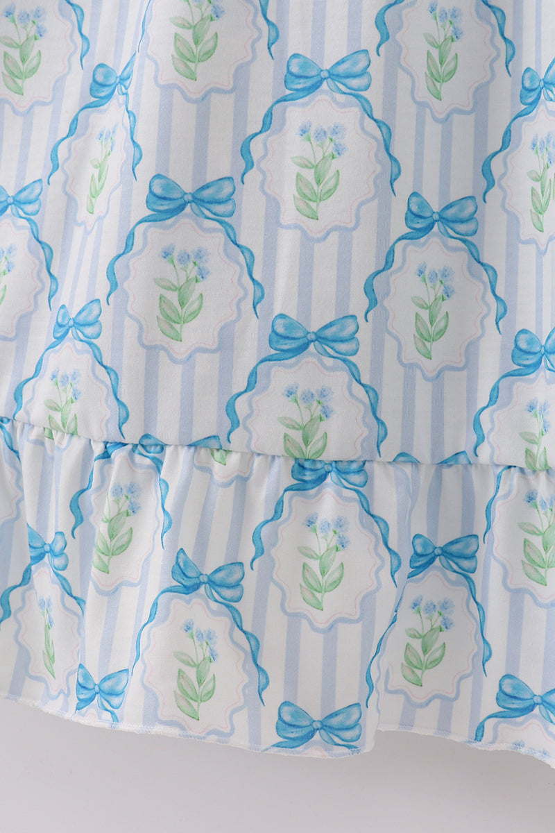 Blue floral bow tie strap mom dress