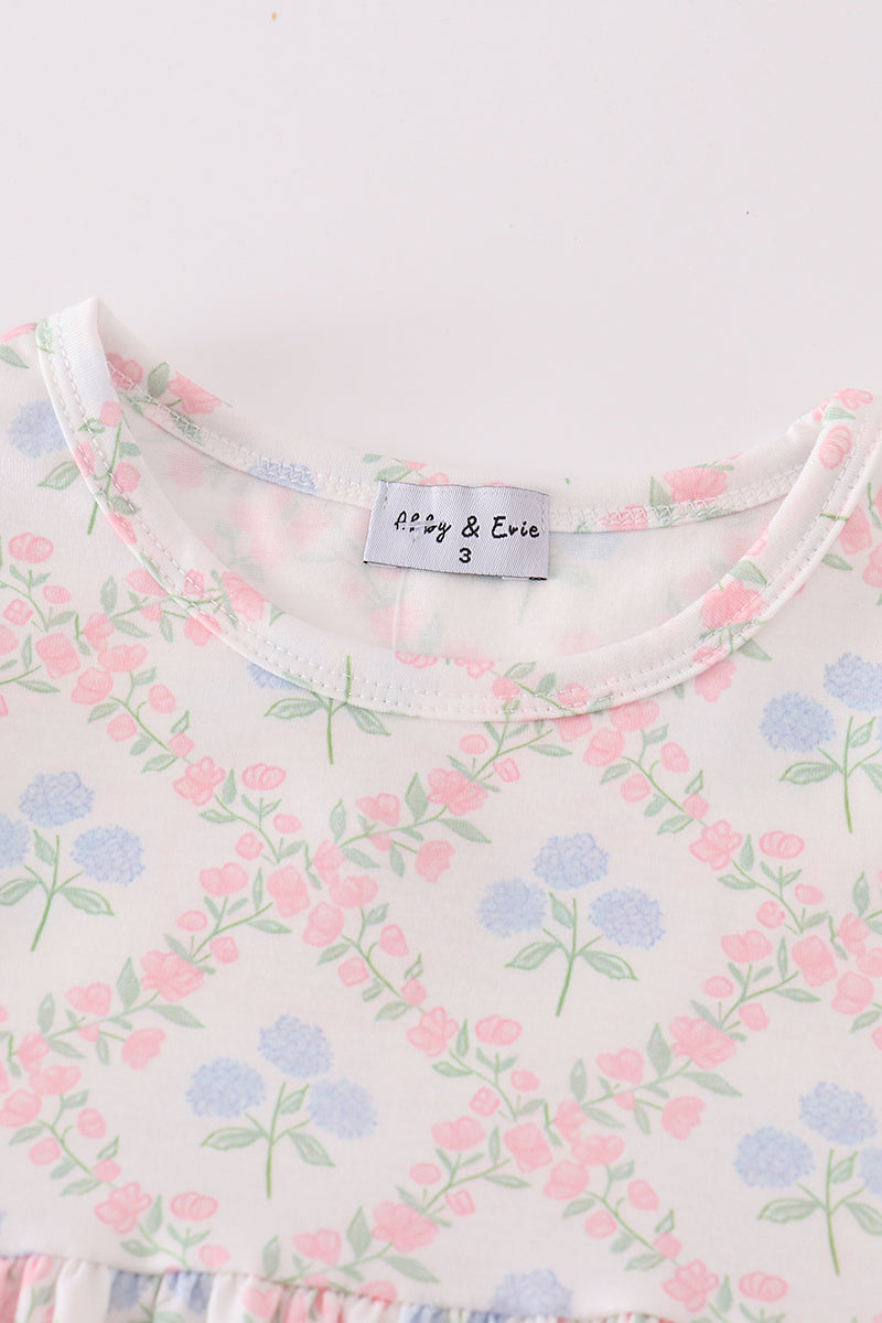 Blue hydrangea print girl set