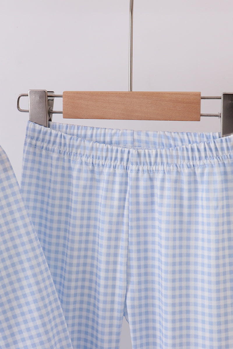 Blue santa claus embroidery ruffle pants set