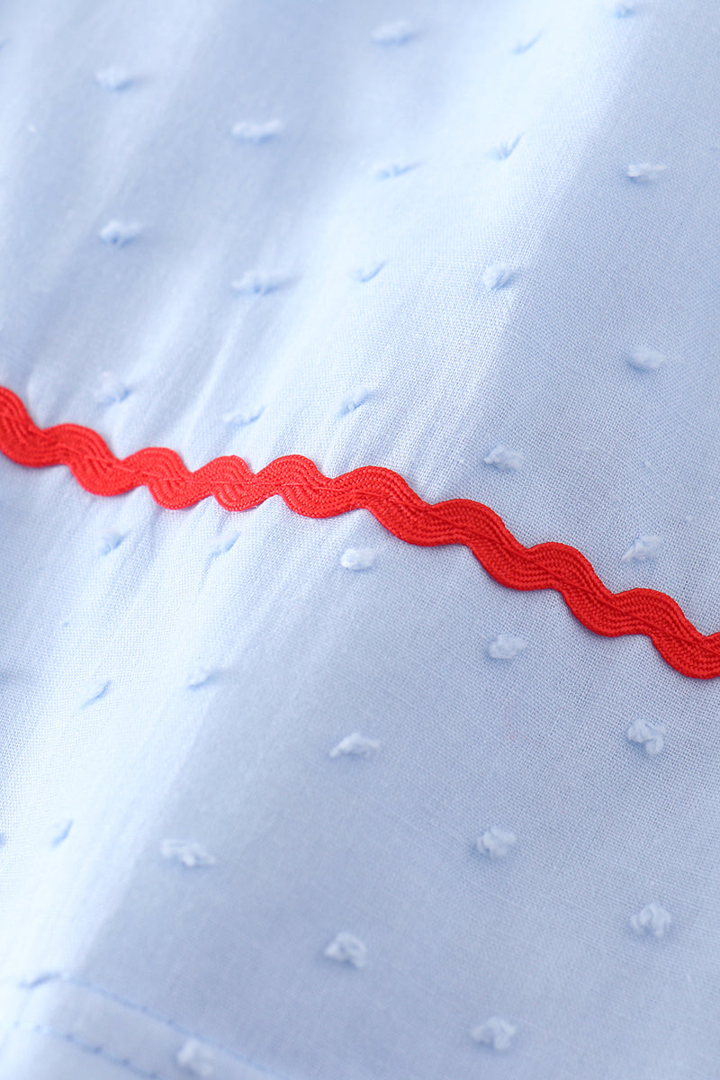 Blue swiss dot flag embroidery dress