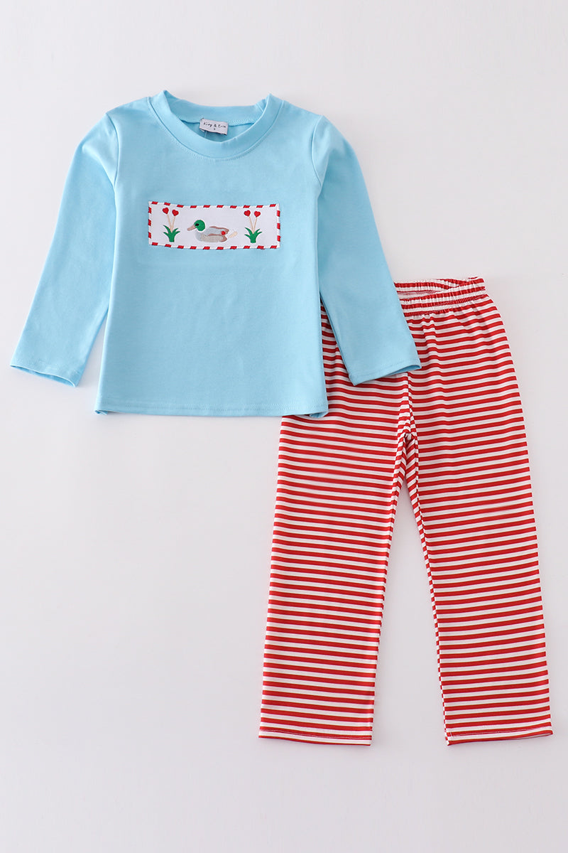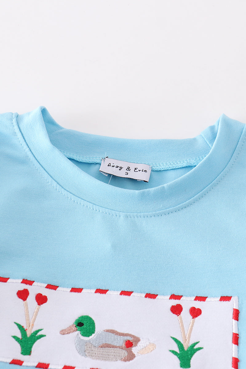 Blue valentine duck embroidery boy set