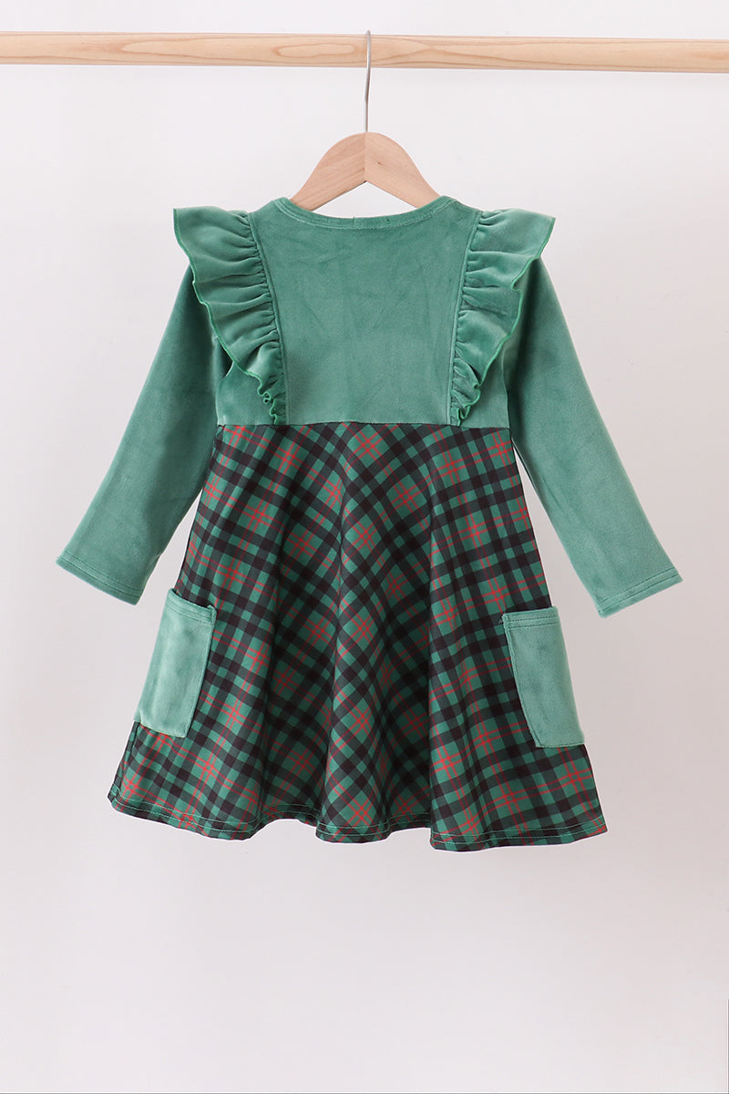 Forest velvet ruffle dress