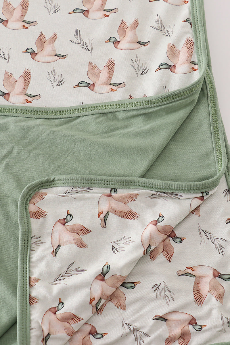 Wrap yourself in cozy charm with this green duck print bamboo blanket. Soft, breathable bamboo fabric keeps you comfy while adding a splash of playful whimsy to any room. Perfect for snuggling up or brightening your space with a touch of nature-inspired fun.