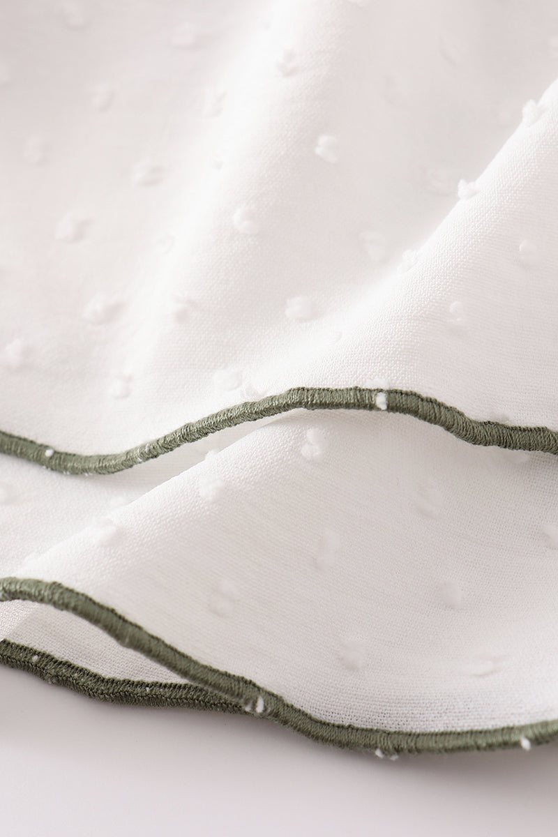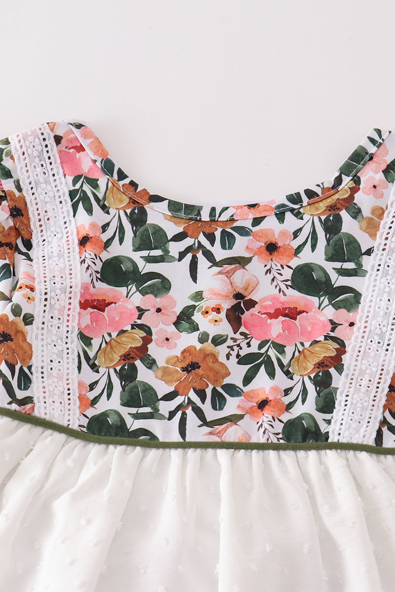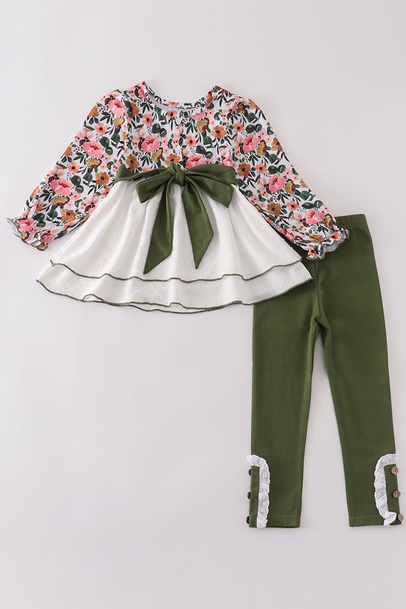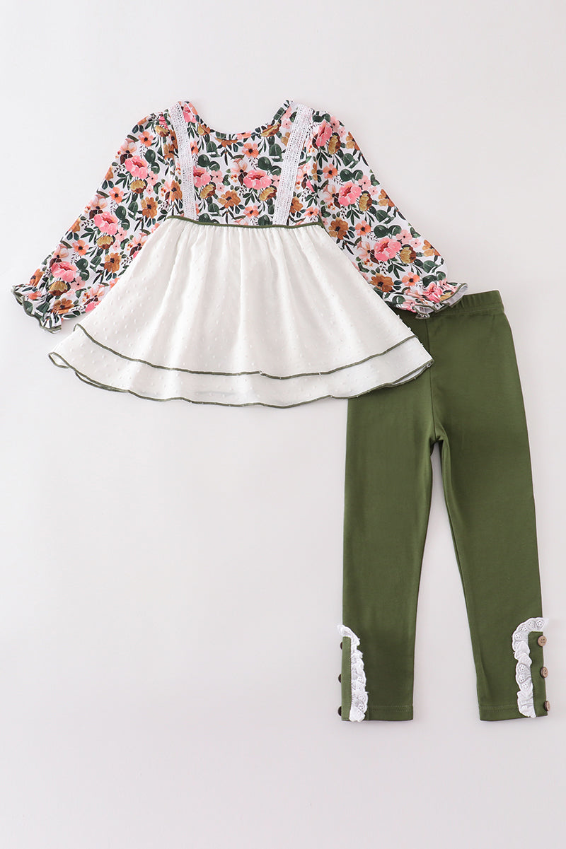 Brighten up your little girl's wardrobe with our Green Floral Print Swiss Dot set! Featuring a playful green floral print on a delicate swiss dot fabric, this set is perfect for adding a touch of whimsy to any outfit. Made with quality materials for all-day comfort and style.