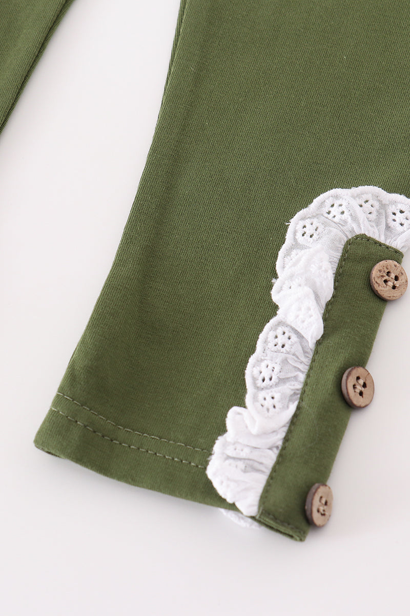 Premium Green floral print swiss dot girl set
