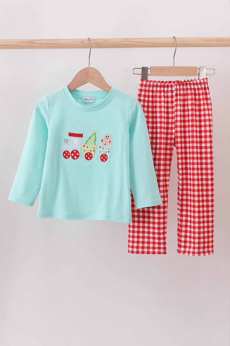 Dress your little one in festive fun with this Mint Gingerbread Applique Pants Set. Featuring soft, mint-colored fabric adorned with charming gingerbread appliques, this playful outfit brings holiday cheer to everyday comfort. Perfect for cozy days and joyful moments, it combines adorable style with easy wearability for your child's happiest celebrations.