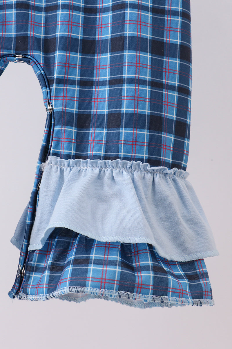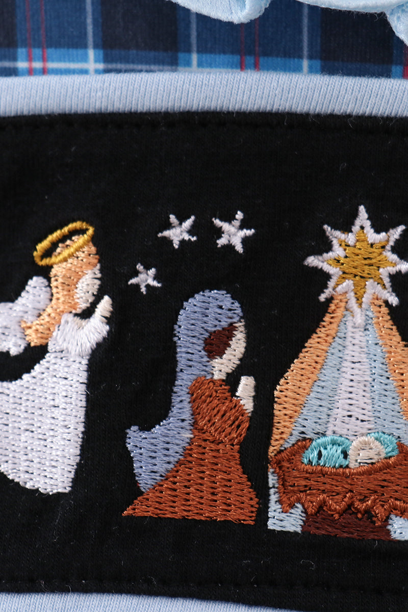 Dress your little one in festive charm with this Navy Nativity Embroidery Plaid Ruffle Romper. Featuring delicate nativity details and playful ruffles, this romper blends holiday spirit with cozy plaid comfort. Perfect for joyful celebrations and picture-perfect moments, it’s as adorable as it is comfy.