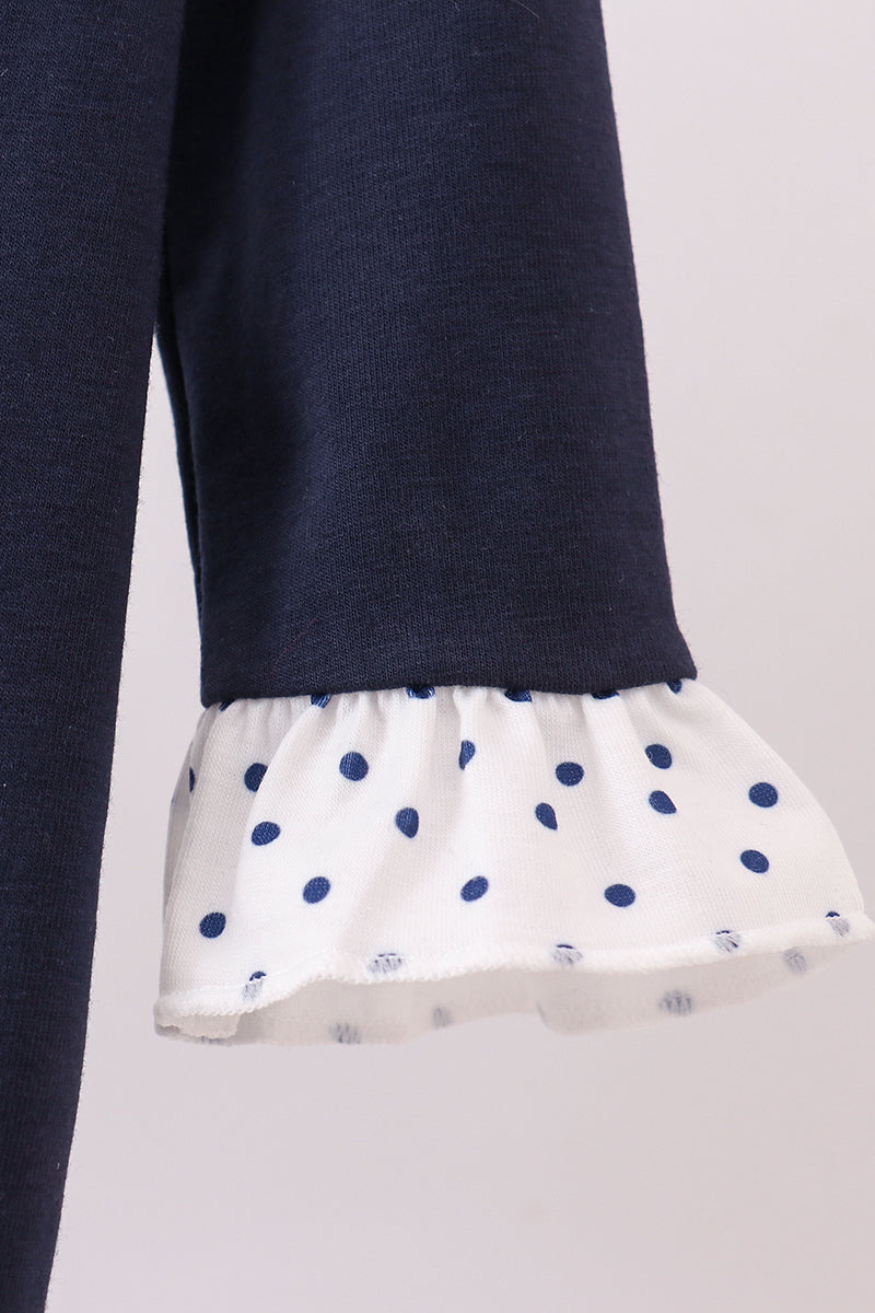 Dress your little one in festive cheer with this Navy Nativity Embroidery Ruffle Romper. Featuring charming nativity-themed embroidery and playful ruffle details, it brings a touch of holiday magic to any occasion. Soft and comfy, it’s perfect for joyful celebrations and cozy family moments.