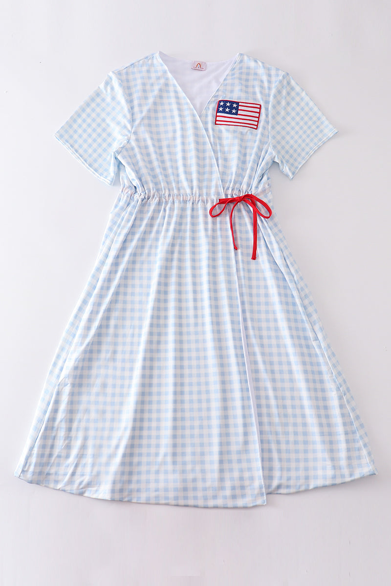 Patriotic plaid flag embroidery woman bikini swim cover up
