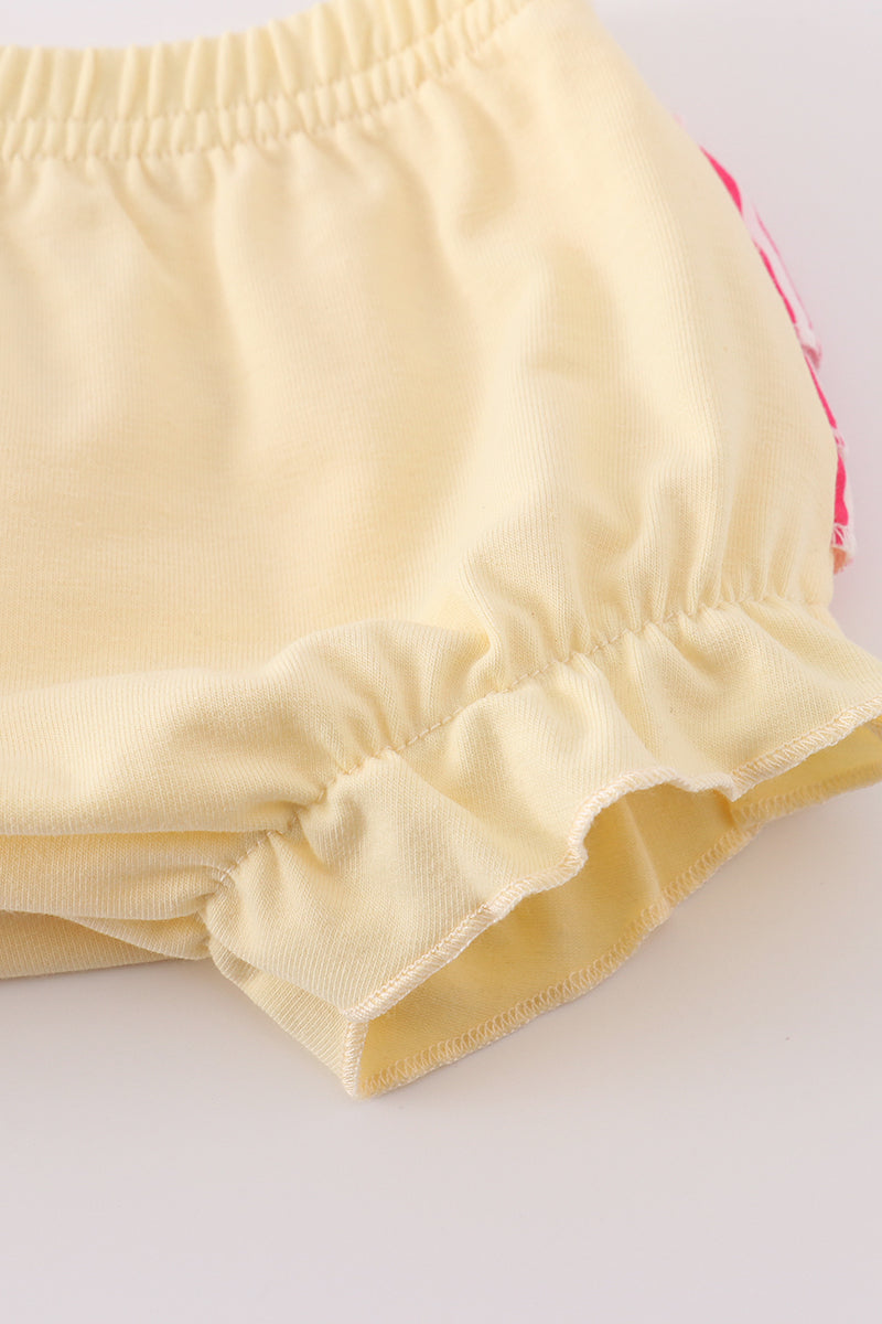 Hop into spring with this adorable Pink Easter Bunny French Knot Girl Bloomer Set! With its delicate French knots and playful bunny design, this set is perfect for Easter photos and egg hunts. Made with soft, high-quality fabric for all-day comfort. Don't miss out on this charming addition to your little one's wardrobe!