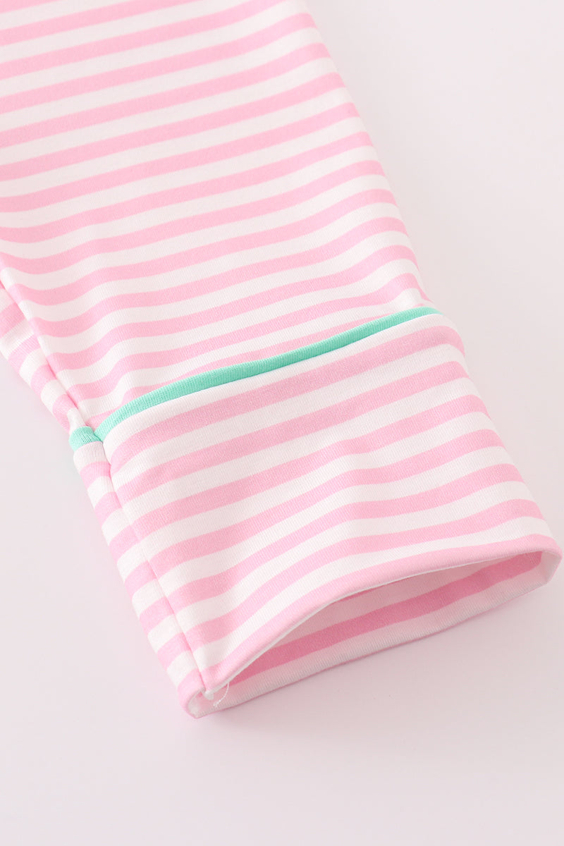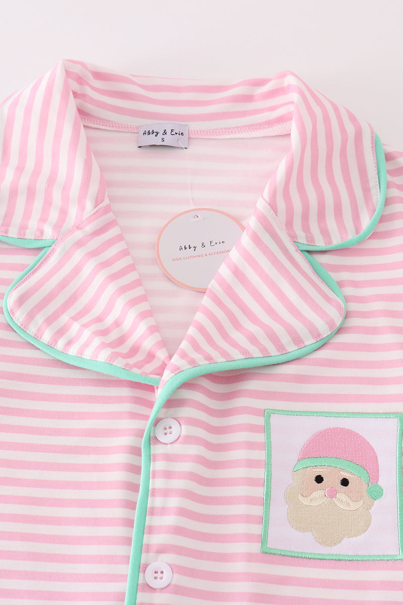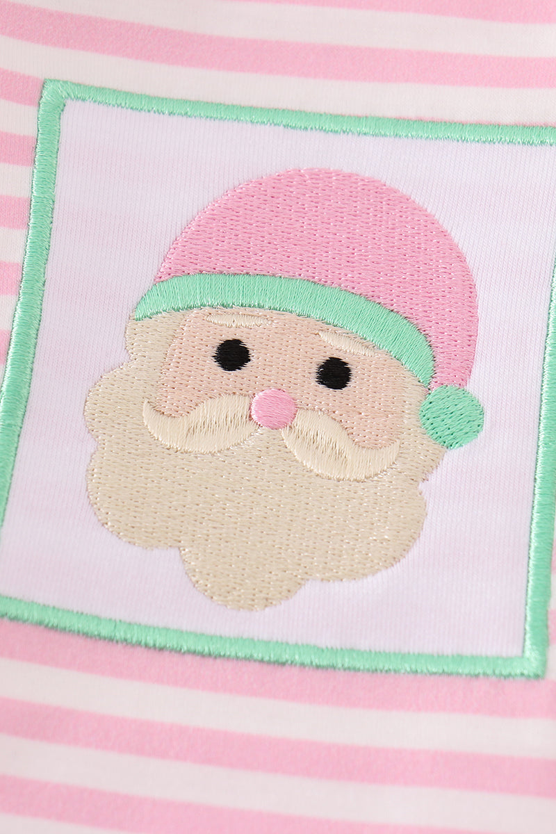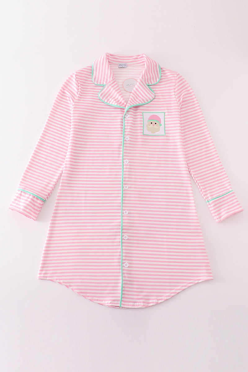 Pink stripe christmas santa claus embroidery women gown
