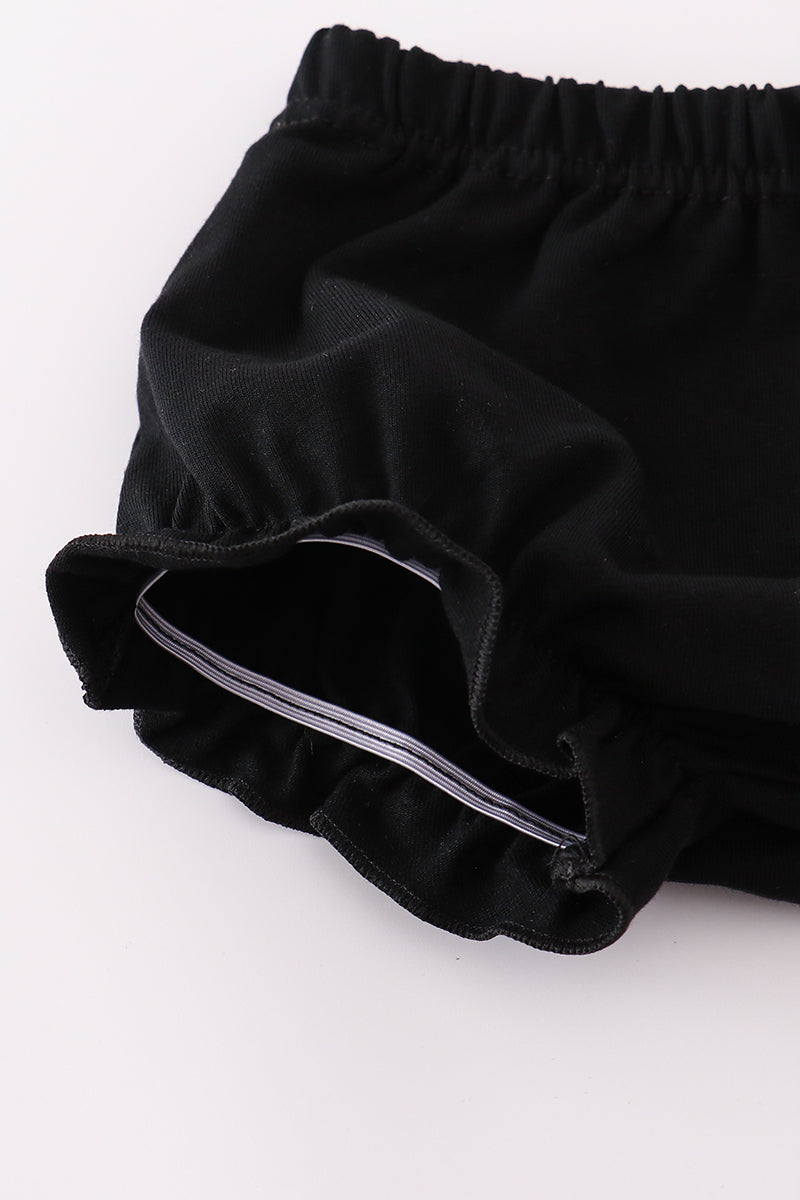 Celebrate Halloween in style with this playful purple bloomer set, featuring charming witch embroidery and festive dot patterns. Perfect for little trick-or-treaters, it combines comfort with spooky fun, making every Halloween moment magical and memorable.