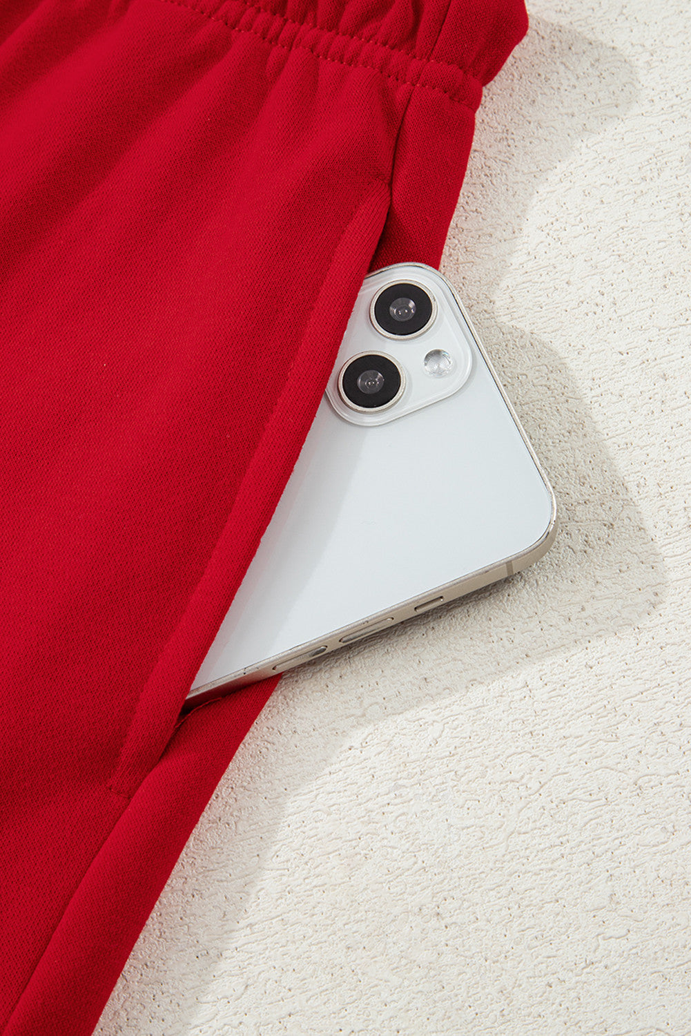 This casual two-piece set combines comfort and style effortlessly. Featuring a baggy pullover sweatshirt with a contrast striped collar and charming satin bow accents, paired with matching drawstring shorts. Crafted from a quality cotton-blend fabric with medium stretch, it offers a soft, comfortable fit perfect for relaxed days or casual outings.