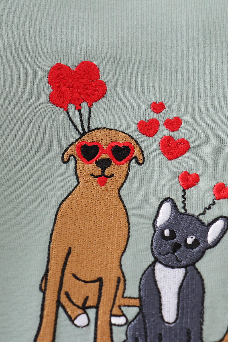 Sage valentine puppy heart embroidery boy top