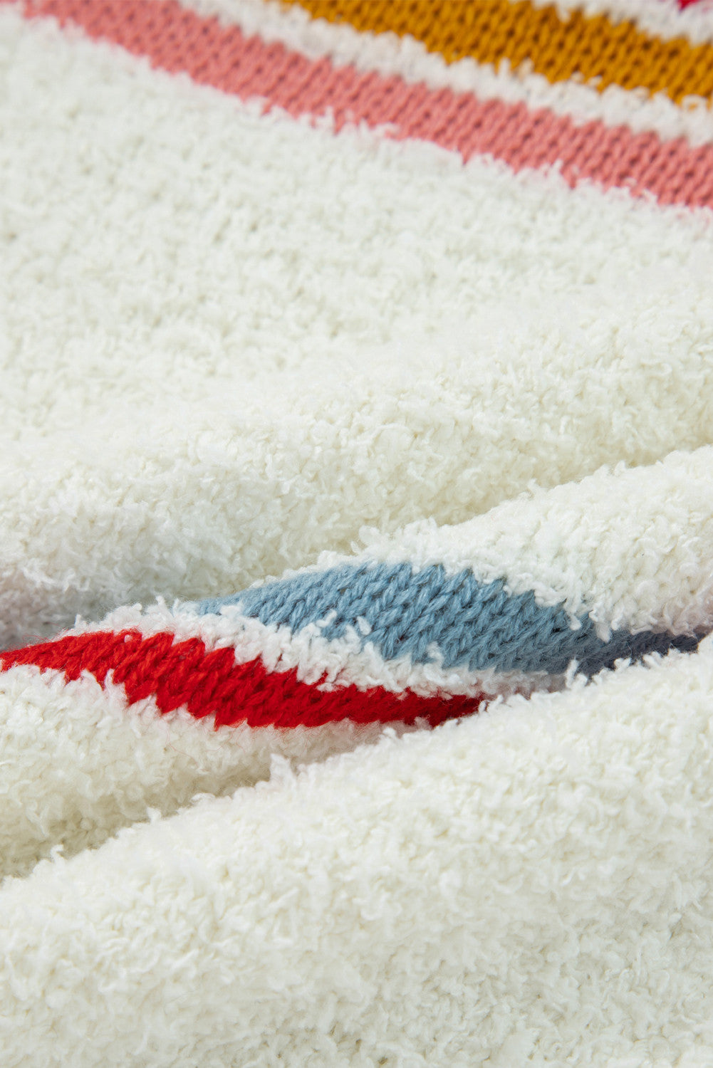 Stay cozy and stylish all season with this chic popcorn sweater. Featuring trendy multicolored stripes and ribbed trim, it adds vibrant, playful energy to your casual wardrobe. The hooded design offers a relaxed, comfortable look perfect for everyday wear.